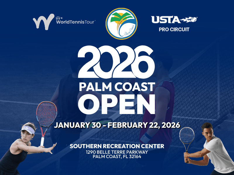 The City of Palm Coast announces the return of the 2026 Palm Coast Open, a professional tennis tournament sanctioned by the USTA Pro Circuit and the ITF World Tennis Tour, scheduled to take place January 30 through February 22, 2026, at the Southern Recreation Center, located at 1290 Belle Terre Parkway, Palm Coast, FL 32164.