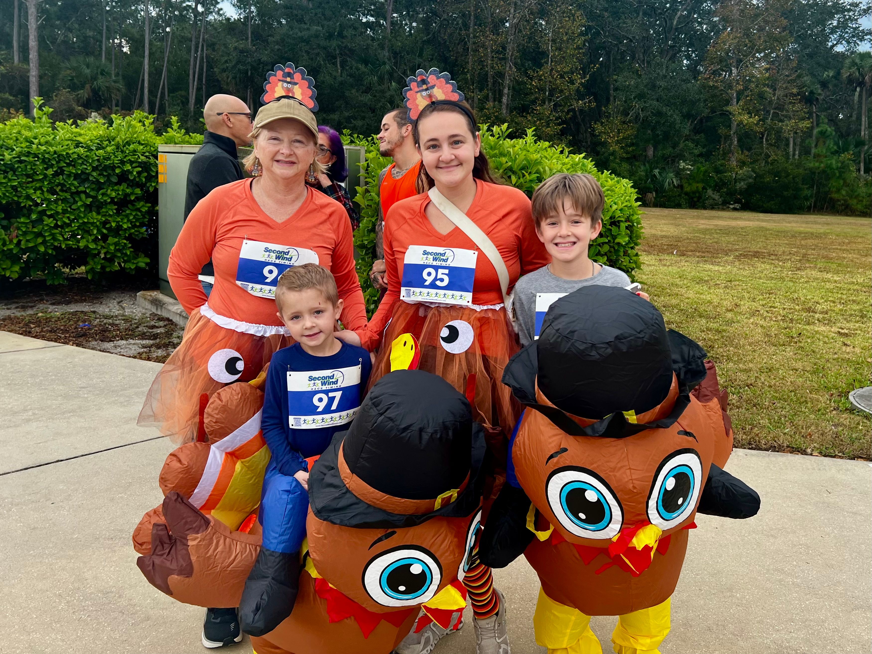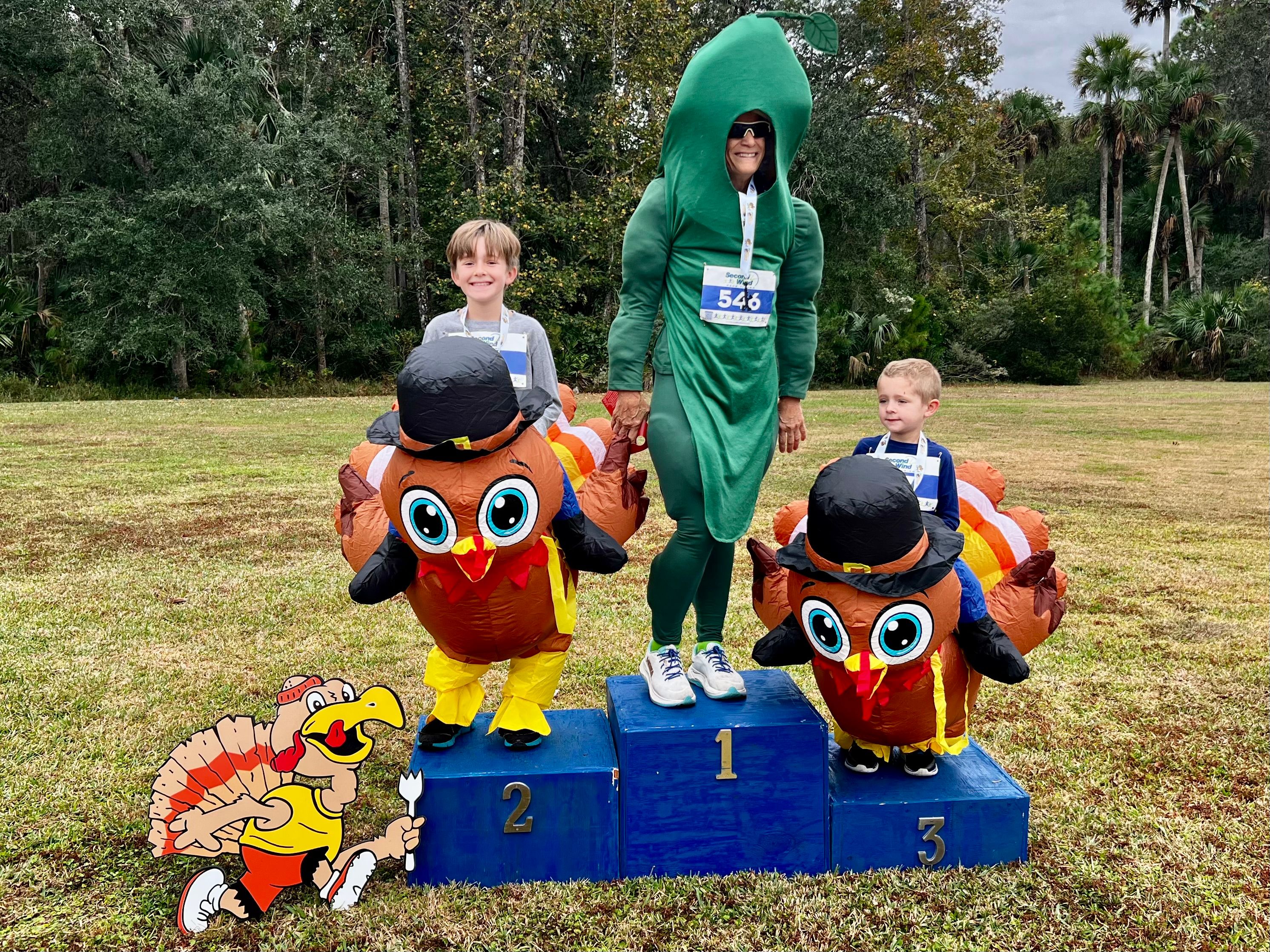 Families, seasoned runners, some in costumes, and first-time participants filled the route with energy and gratitude as they made their way from Daytona State College Palm Coast Campus, along the scenic Intracoastal Waterway, toward the Hammock Bridge, and back again. The cool morning air, festive outfits, and laughter along the course created the perfect start to a day of family, food, and thankfulness.