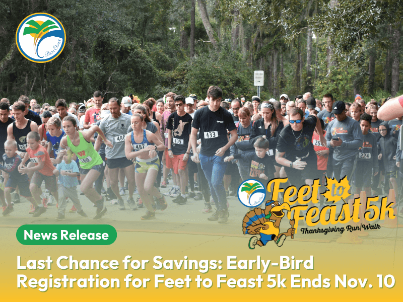 The annual Feet to Feast 5K, sponsored by AdventHealth Palm Coast, takes place on Thursday, November 27 at 7:45 a.m. at the Daytona State College Flagler/Palm Coast campus. This family-friendly run/walk has become a cherished Palm Coast tradition, offering a festive start to the holiday and a scenic route along the St. Joe Walkway. Whether you’re racing for a personal best or simply earning your Thanksgiving feast, it's one of the community’s favorite ways to kick off the day.