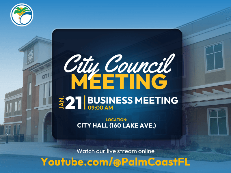 The Palm Coast City Council meets regularly to discuss and vote on official City business. These meetings are open to the public, and Palm Coast residents are strongly encouraged to attend. An increase in public engagement helps to build a stronger sense of community, increase valuable discussions, and decrease division.