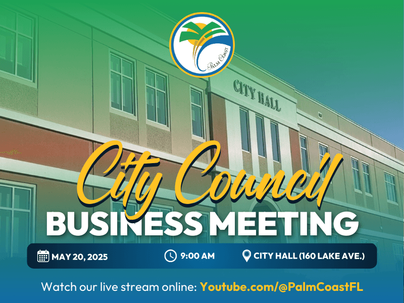 The Palm Coast City Council meets regularly to discuss and vote on official City business. These meetings are open to the public, and Palm Coast residents are strongly encouraged to attend. An increase in public engagement helps to build a stronger sense of community, increase valuable discussions, and decrease division.