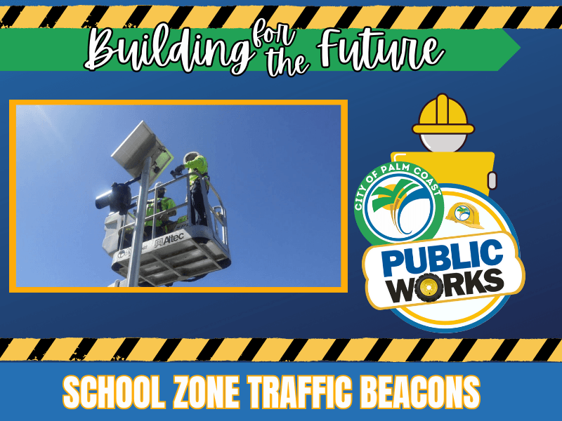 The City of Palm Coast Public Works Traffic Division is working to upgrade and install new solar-powered traffic beacons in local school zones. This project will include 7 new beacons and 1 existing upgrade at the Indian Trails Middle and Belle Terre Elementary, 4 new beacons and 3 upgrades at Buddy Taylor Middle and Wadsworth Elementary and 2 beacon upgrades at Rymfire Elementary.