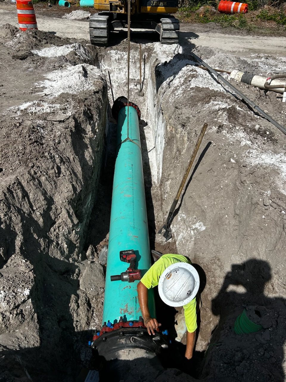During the month of June, work on the Old Kings Road Force Main project focused on system flushing and site maintenance. The contractor successfully flushed approximately 600 linear feet of the force main in preparation for its eventual activation. Additionally, crews conducted cleanup operations along the project corridor on Old Kings Road and Utility Drive, removing various debris piles to maintain a safe and orderly work site. With these latest efforts, the project is now estimated to be 65% complete.