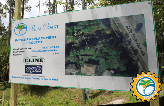 The City of Palm Coast is replacing the aging P-1 weir along Belle Terre Parkway to improve stormwater management and system reliability. The upgraded weir will add modern functionality, including the ability to monitor water levels in real time and better prepare for hurricanes and other severe weather events.